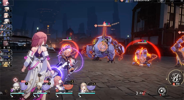 4、战斗三:选择双掌坠击流派,开局蓝胖召唤机兵,艾丝妲、阿兰战技打蓝胖,希露瓦战技将中间自爆机兵击破,接着景元普攻齿狼,开大将蓝胖和自爆机兵击破,希露瓦和景元开大打齿狼,之后蓝胖复活,景元开大,艾丝妲战技打蓝胖,阿兰开大即可。