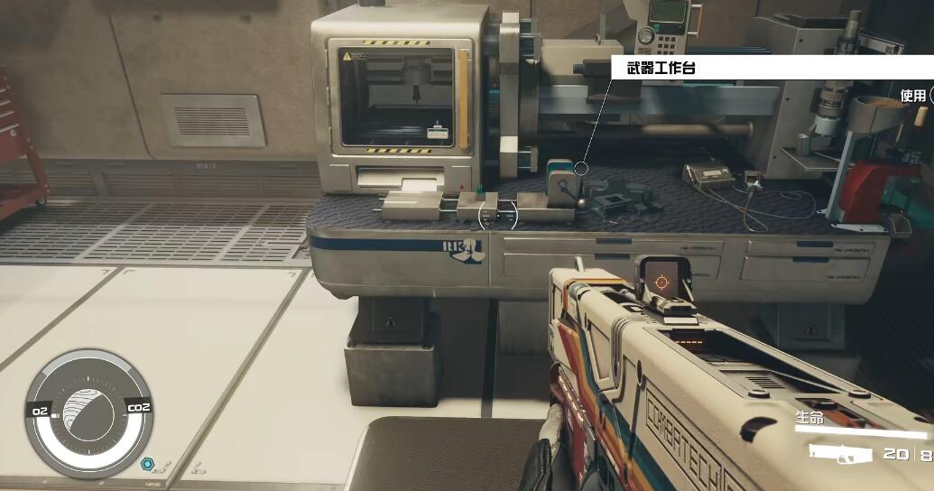 3、然后我们找到右边角落的武器工作台,并选择使用。