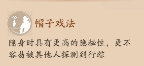 莫朗一技能具备隐身特性,但因种种限制条件,实际操作中被敌方目标发掘的概率极高。因此,若能结合天赋——帽子戏法,那么偷袭成功率将直线提升,即:天赋效果是在莫朗隐身时自动提升效果,增加敌方目标发现自己的难度,为作战提供条件。